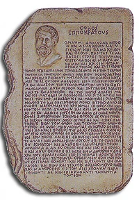 Кунем се Аполоном Лекаром и Асклепијем и Хигијом и Панакејом и свим боговима и богињама, које позивам за сведоке, да ћу према својим способностима и расуђивању испунити ову заклетву и овај завет: Да ћу оног ко ме је научио овој вештини сматрати равним мојим родитељима и да ћу живети у сарадњи са њим и да ћу му, кад му је потребан новац, давати део свог; да ћу његове потомке сматрати равним мојој браћи и сестрама по мушкој линији и да ћу их учити овој вештини – ако желе да је науче – без накнаде и завета, да ћу учења и усмена упутства и сво друго знање пренети мојим синовима и синовима оног ко је поучио мене, и ученицима који су дали овај завет и заклели су се по медицинским правилима – али ником другом. Применићу мере дијете за добробит болесних према својим способностима и процени, чуваћу их од штете и неправде. Нећу дати никакав смртоносан лек никоме ко га тражи, нити ћу тако нешто предлагати. Исто тако, нећу ниједној жени дати средство за абортус. У чистоти и светости држаћу мој живот и моју вештину. Нећу применити нож, чак ни на онима који пате од камена, већ ћу то препустити онима који се тим послом баве. У коју год кућу да дођем, доћи ћу за добробит болесних, уздржавајући се од сваке намерне неправде, свакаквог лошег понашања, а посебно од сексуалних односа и са женским и са мушким особама, свеједно да ли су слободни или робови. Шта год да приликом лечења, па чак и по страни од лечења, чујем у погледу живота других људи, а што нипошто не би требало причати, задржаћу за себе, сматрајући да је срамота говорити о таквим стварима. Ако испуним ову заклетву и не прекршим је, нека ми буде дато да уживам у животу, владам овом вештином, да будем уважен међу људима за сва времена; а ако је прекршим и лажно се закунем, нека ме задеси све супротно од овога.